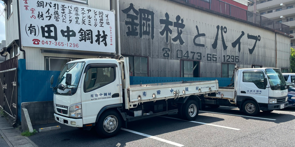 田中鋼材は、1979年の創業以来、千葉県松戸市に根ざした鋼材屋として、鋼材の販売・配達・加工まで柔軟にサポートしています。